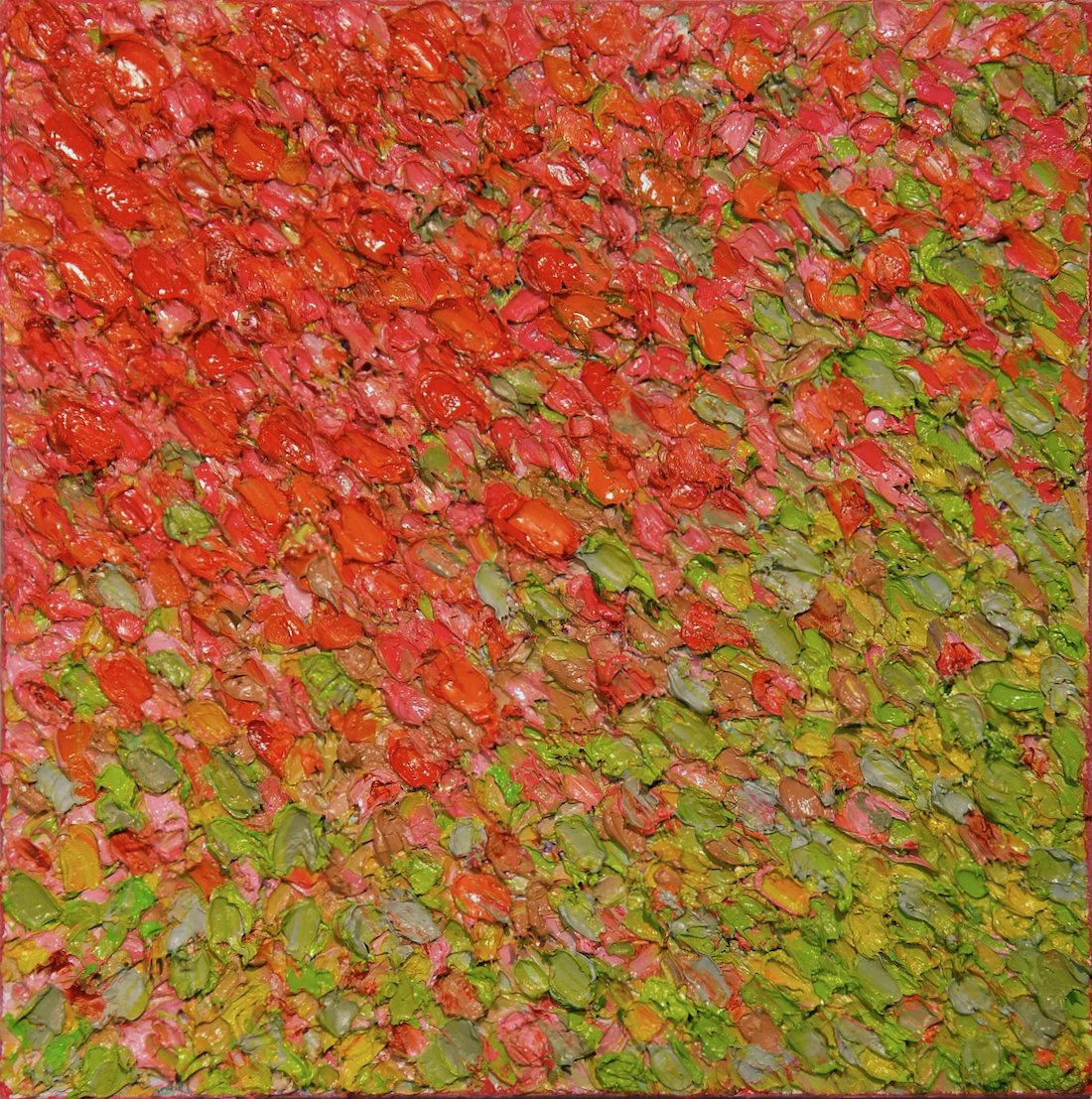 Defined by thick, expressive layers of oil paint on stretched canvas, this pivotal era marks the full emergence of Dian’s abstract artistic voice. Rich in texture and saturated color, these works reflect a decisive expansion of her expressive techniques and position this period as a cornerstone of her abstract painting practice.